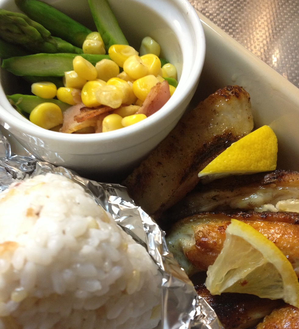 チキンヒーローとコーンサラダ 肉 2013年04月19日 チキンヒーローという言葉、関西限定なのかも。手羽中半割のこと。手羽先より食べやすく 手羽元より肉離れが良い。塩焼きしてレモンをはさむだけ。置き弁用として取り置きしておかないと つまみ食いの餌食になって いつのまにかなくなってしまう。鮭おにぎりと。コーンサラダと呼んでいるけれど 気持ちのメインはアスパラ。春だもの。ベーコンの切れっ端とさっと炒めて。加工肉は 何かと悪者にされがちだけれど塩味代わりに細切れを入れると 豚肉のコクも加わって美味しい。