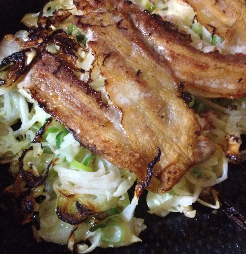 お好み焼 炭水化物 2013年05月28日 お好み焼といえば ジャンクB級の関西代表。ジャンクとはいえ 野菜がたっぷりとれるので栄養面で優秀メニュー。粉モノなので カテゴリは【炭水化物】に我家のお好み焼は 粉少なめでさっくり。お好み焼というくらいなので 生地の配分や具材はお好みでOK。カリッとこげた部分も美味キャベツと青葱+白葱、イカゲソと豚バラ。これが我家のスタンダード。ニラがはいることもあるし カイワレをきざんで入れることもあり。実はポン酢で食べても美味しい。