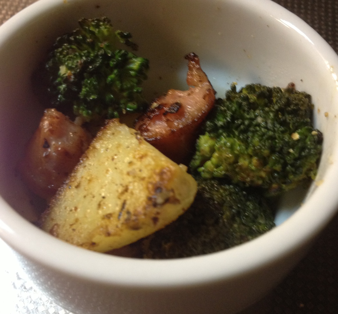 じゃがいも小鉢 炭水化物 2013年05月30日 ちぎりソーセージ、ゆでたじゃがいも、ブロッコリー。この順番、マヨネーズでじゃっといためる。ソーセージがベーコンになったりブロッコリーがほうれん草になったり玉ねぎやきのこがプラスされたり・・・要は手元にあるもので。たくさん食べると確実に口の中が脂っこくなるので箸休め程度にちょうどよい1品。さめてもそれなりに美味しいし温め直しても じゃがいものほっこり感は嬉しいし置き弁には頼もしい脇役。こういうとき、ソーセージはちぎったほうがベーコンは粗目のビッツにするほうが雰囲気出る。
