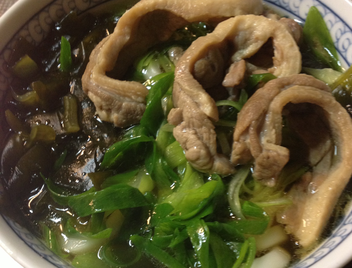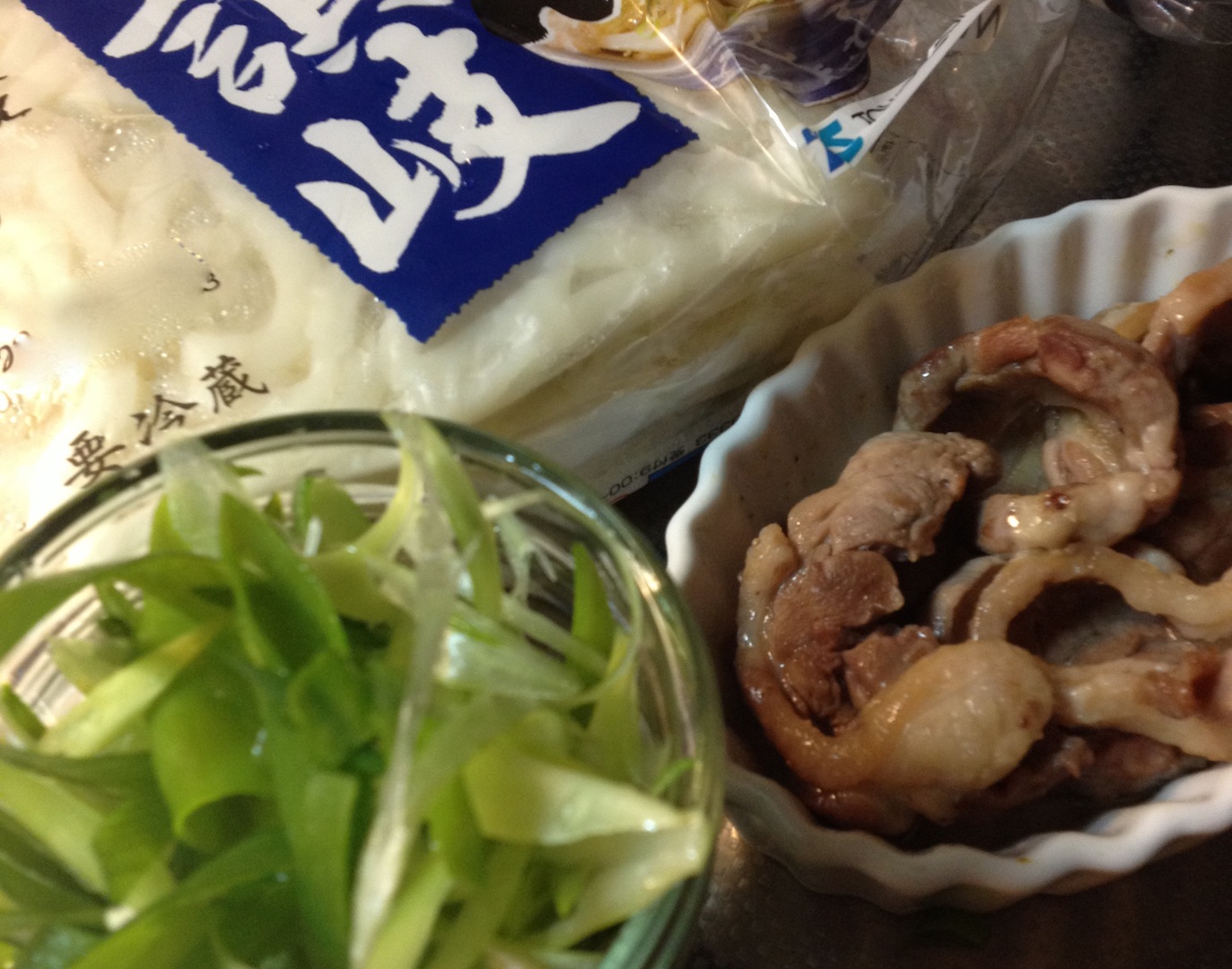 鴨ネギうどん 炭水化物 2013年07月08日 鴨はデイリーな食材ではないけれど、息子は大好き。百貨店で処分価格になっているものを発見。鴨を焼いた鍋で出汁を仕上げる、以外は普通のうどん。肉脂が出汁に加わると 一気に味わいが濃厚になるのが魅力。ねぎの香りが 絶妙なバランスに。出汁は 自作のことも市販品を使うことも。今回は 創味のつゆをベースに みりん&塩。箱側面の希釈目安は 私には醤油の味が濃く出過ぎる気が。醤油味が強いおつゆは得意ではないなあ。うどんは息子が調理する前提で数分熱湯でほぐせばよいタイプ。鴨肉もねぎも 食べる直前まで別保存。このあたり「めんどくさい」のか「少々のことなら美味しく食べたい」のかタイプで割り振りするところ。息子は後者。これを用意した日、息子は別場所で夕食をいただくことになっていた。私が完全に失念しており、鴨発見も相まってフライングしたわけでこの写真は翌日の朝食として登場した時のもの。出汁にわかめがたっぷり仕込んである。「わかめが多いー」というのは文句でなく ただの感想。鴨を知る前は 「わかめうどん」が息子の定番だったのさ。