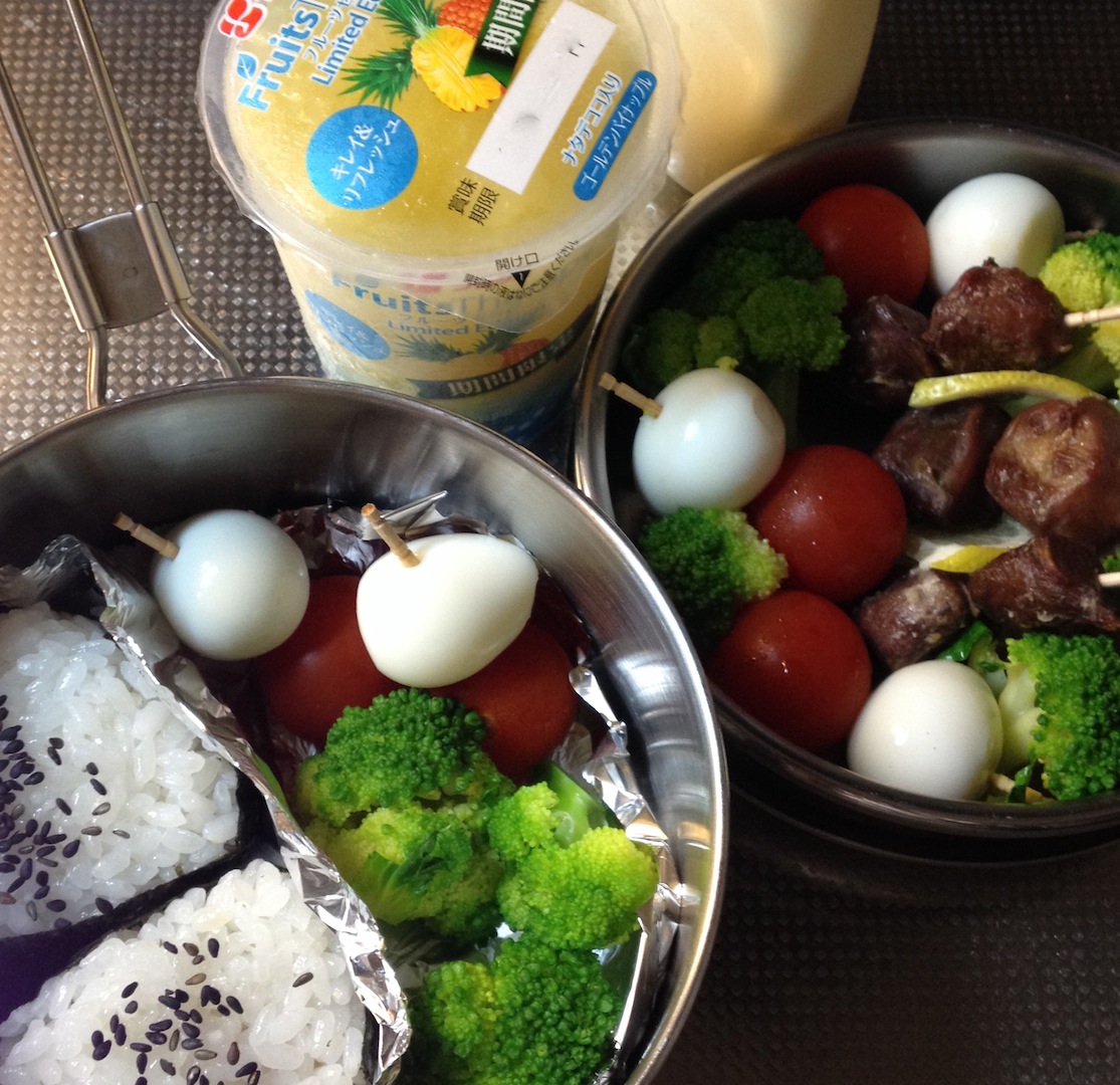 体育大会のお弁当/砂肝 部活弁当 2013年09月23日 今回のメイン・プロテインは砂肝。塩焼きして爪楊枝刺しして レモン薄切りを隙間に。ちぴトマトとちび玉子も爪楊枝刺し。ブロッコリーの森でグリーンOK。 中学生になると ご飯食べるよー、と散々言われているけれどまだ 米粒の魔力にとらわれてはおらずむしろ 隙あれば残そうとする。おにぎり3つは多すぎる、というので2つに。保冷剤代わりに凍らせたフルーツゼリー、森ブロッコリーは 今回下味をつけていないのでマヨネーズを。体育大会当日、玄関で靴を履きながら 不安そうに息子は問うた。「今日、見に来る?」来ないで、と言うと失礼だと感じたのだろうか。首を横にふり「帰ってきたら 話聞かせてね」というと嬉しそうな顔で 走っていった。その日、朝ご飯を食べながらメモ帳に描いていた。 すっかり私のお気に入り。